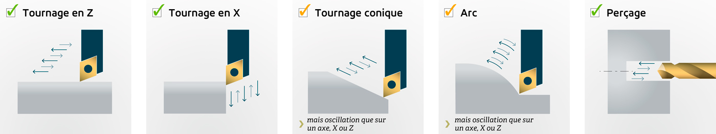 - Contrôle programmable du bris des copeaux, le système permet de les fractionner au fur et à mesure de la coupe.